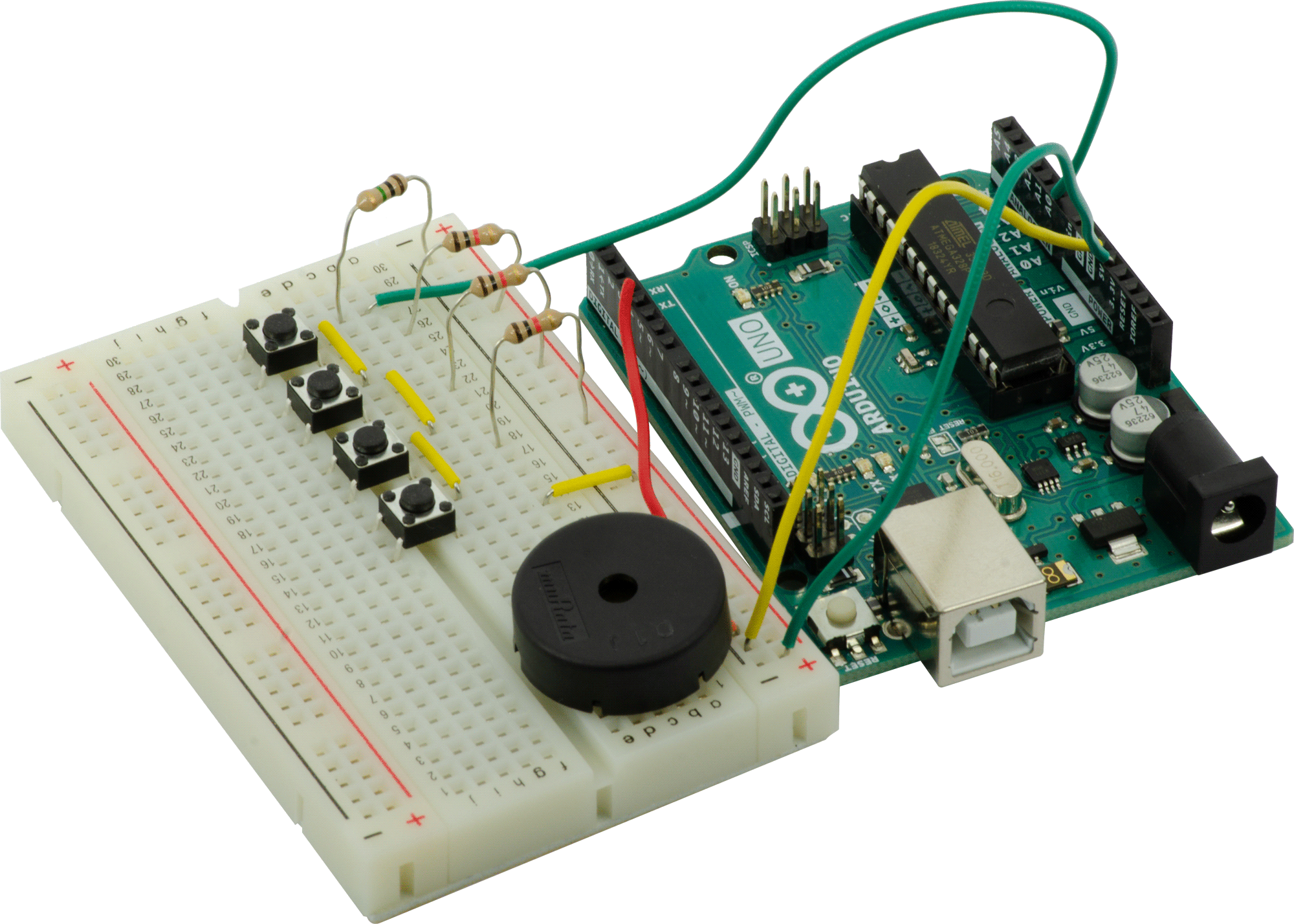 Com poucos resistores tu vais construir um pequeno teclado musical.