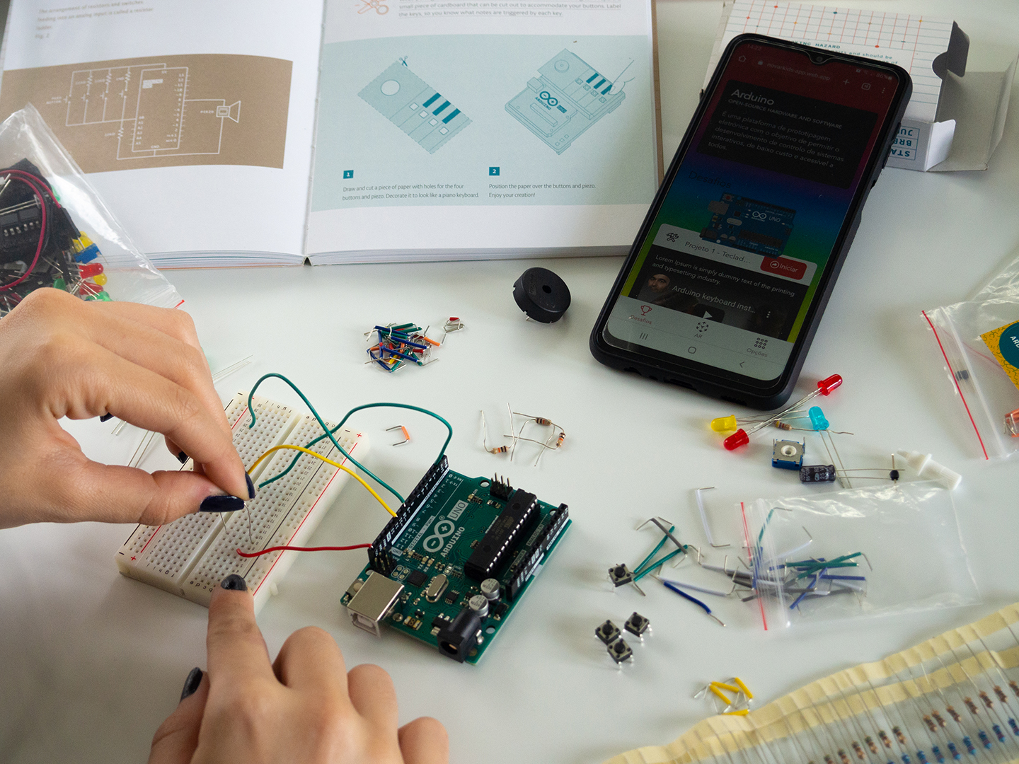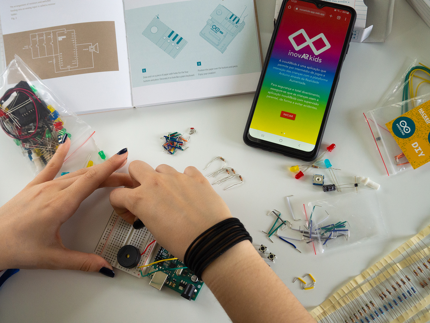 Apresentamos o sistema Arduino através de uma aplicação, na qual a criança através de desafios constrói diferentes projetos. Saiba mais